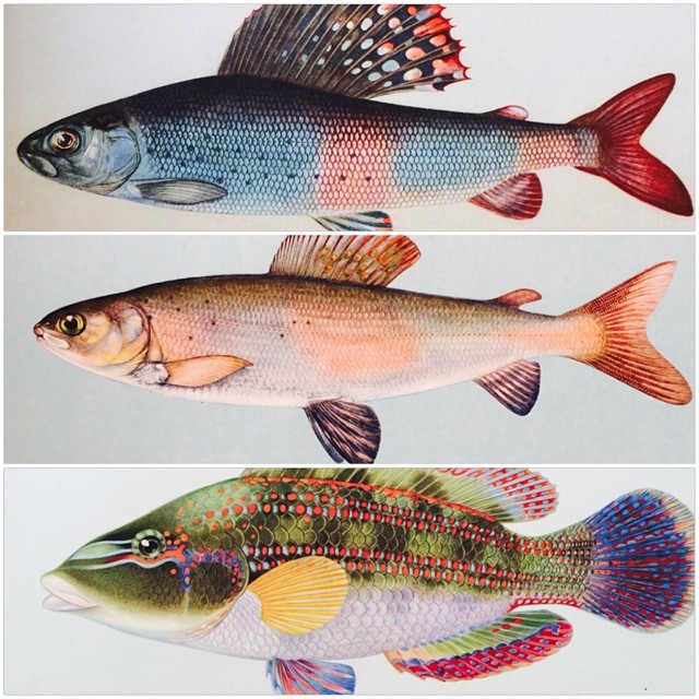 Leidsin isa kodust paksu PAKSU nõuka-aegse raamatu värviliste kala piltidega. Maagiline! Nii ilusad! Mõtlesin osad panna seinale, teha mingi kollaaži vms…aga samas osad kalad jäävad minu valikust välja, kas äkki keegi tahab ka osa saada sellest rikkalikust kalasaagist? Või teab kedagi kes teab kedagi…