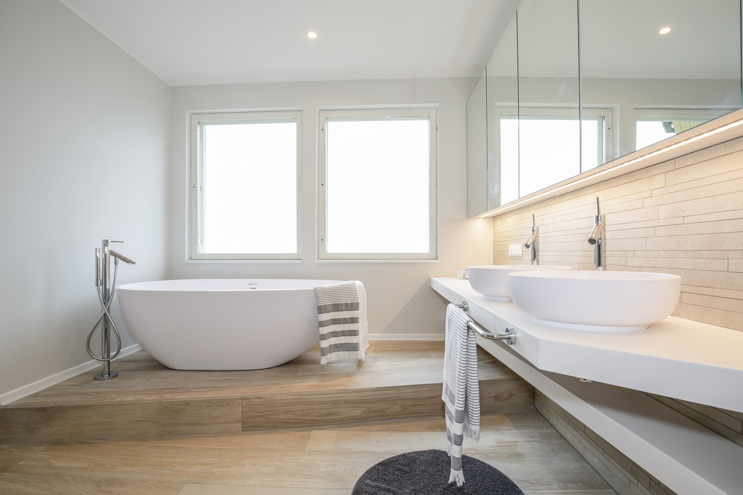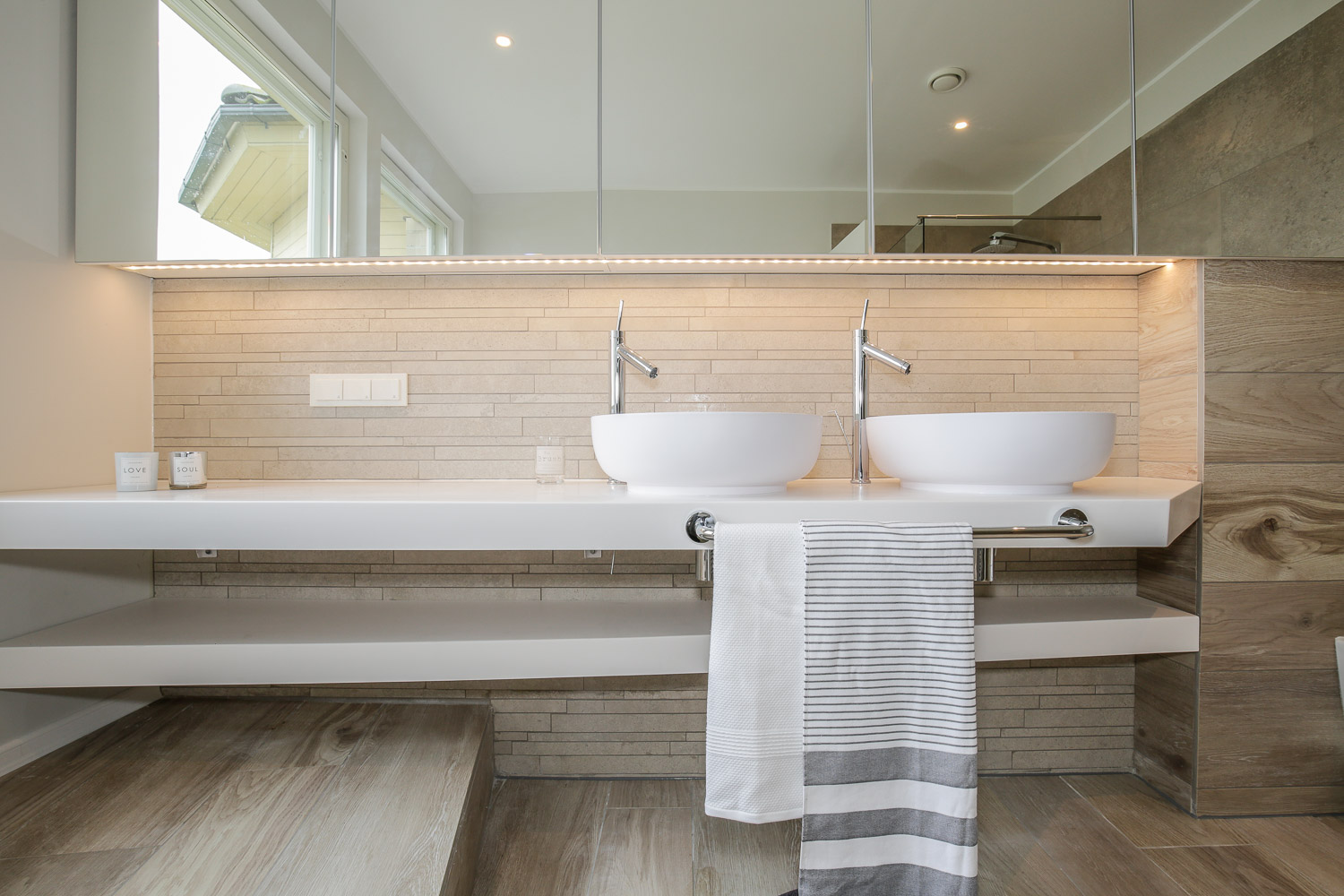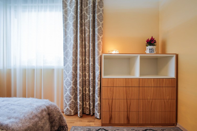 Tänu Softeni asjalikele pehmemööbli meistritele saime erijooniste järgi valmistada mõnusa voodi. Toas on kasutatud osaliselt Boconcepti aksessuaare, mööblit, aga ka H&M koduosakonna detaile.Et segamatult tööd teha, on ühest toast tehtud kontor. Liigset tööstressi aitab loodetavasti leevendada mahe samblaroheline seinavärv (pildil tundub veidi erksam).Otse vahuses vannis olles saab vaadata tormist merd, mida kahjuks pildil pole näha 🙂 Vanni Vertigo leidsin Schönbergi tootevalikust ja põrandasisene vannisegisti on Hansgrohe AXOR seeriast. Erijooniste järgi tehtud Creacore tööpinnad valmistas Eumar.Seintel ilutsevad Casa Dolce Casa “Terra” kollektsiooni plaadid (Vivarec) ja põrandal erineva laiusega “Wood” kollektsiooni audentselt puitu imiteerivad plaadid.Esiplaanil Schönbergi Roundo valamud ja Hansgrohe AXOR Starck segistid. Minimalistlikud aksessuarid, mis läheks kokku üldise õhulise meeleoluga, leidsime seekord H&M’i koduosakonnast.Esik oli enne väga ebapraktiline ja ei võimaldanud asju ära panna. Kuna seina osa, kuhu mööbel paigutada, oli üsna kitsas, oli mõistlikum ruumi kasutada avatuna. Lahendasime selle seinasuuruse mooduliga, mille materjal läheb sujuvalt kokku põranda viimistlusega. Mahutasime sinna sahtliga istme, 2 suurt riiulit jalanõudele ning kaks pikka riiulit + reelingud riidepuude jaoks. Muide ülemisse riiulisse on peidetud ka valgustus, mis on suunatud lakke. Kogu projektis kasutatud eritellimusmööbel valmis koostöös Uukren mööbliga.Minu üks lemmik valamuid Eumar Origami ja VOLA minimalistlik segisti. Vannitoa heledale teemale kontrastiks valisime mustad MENU vannitoa aksessuaarid Boconceptist.Taaskasutatud puitu imiteerivad keraamilised plaadid leidsin Casa Dolce Casa “Wood” kollektsioonist (Vivarec)