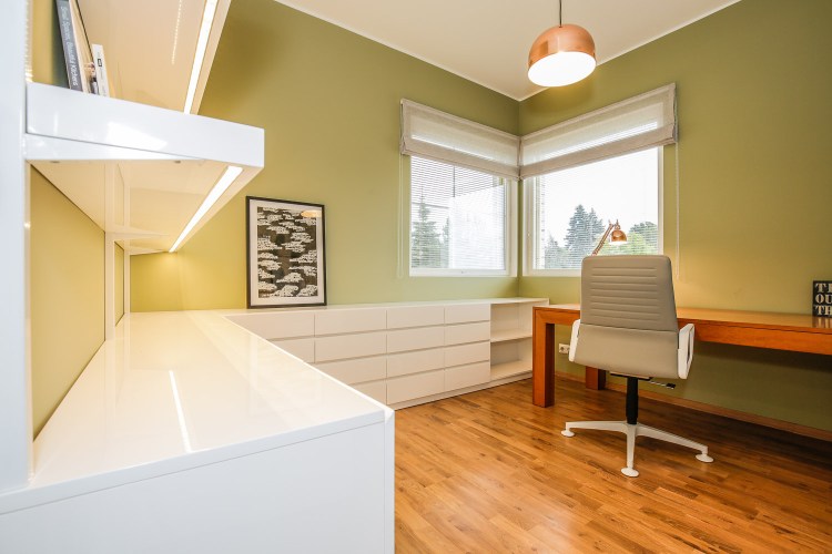 Mida me siis seal tegime? Makeover’i said esimese korruse elutoa/einestamise osa, esik, väike ja suur vannituba, kontor ja üks tuba, mis muutus lastetoast külaliste magamistoaks. Ülejäänud pool läheb tegemisse veidi hiljem. Enne asus kontor üleval ja üks lapse magamistuba all, aga oli palju loogilisem see tuba viia üles, kus teisedki toad on ja kontori osa alla tuua. Uues interjööris on palju eritellimusmööblit ja selle projekti käigus sain teha ka oma “karjääri” kõige värvilisema toa :), millest kirjutasin ka kunagi ühe eraldi blogipostituse. Mitte, et mulle värvid muidu ei meeldi, aga enne pole olnud lihtsalt sellist võimalust.
