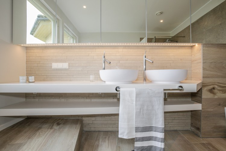 Suure muudatuse said muidugi vannitoad! Enne oli üks erk-sinise ja teine erk-punase mosaiigiga, mis ei sobitud hästi eramu mereäärse asukoha ja muude stiilinäitajatega 🙂 Ok, veits oli juba “old-school”.