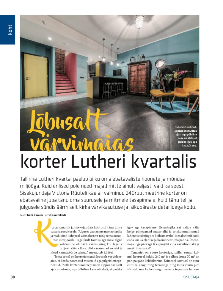 Oktoobri kuu Äripäeva Sisustaja ajakirjas (nr.92 | oktoober 2018) võib leida loo Ruumikoja kujundatud värvilisest korterist, mida juba ka enne on mõnel pool kajastatud. Ikka tore uuesti avastada ja meenutada 🙂